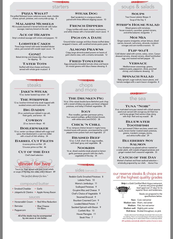 Introducing Strip Steakhouse, a culinary gem located in Avon, OH, that specializes in salads, steaks, and seafood. This intimate and romantic spot offers a range of amenities, from outdoor seating to catering services. The menu features tantalizing soups and starters like the innovative Big Ball steak meatball and savory Lobster Cakes. The salads are fresh and flavorful, with options like the Strip's House Salad and the unique Flip Flop Cold lobster salad. When it comes to steaks, Strip Steakhouse does not disappoint, with choices like Jake's Steak and The Stripper. The rich flavors and high-quality ingredients make every dish a delight for your taste buds. Don't miss out on the chance to experience the exceptional dining experience at Strip Steakhouse.